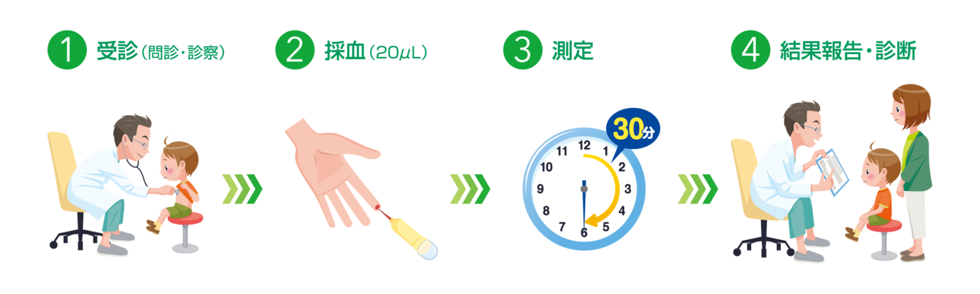 結果は30分程度ででるのですが、外来の混雑具合で結果説明を後日にお願いする場合もございます。また予約検査の方を優先しておりますので、来院いただいた時点ですでにドロップスクリーンが使用中の場合、検査ができない場合もございます。大変申し訳ないのですが、あらかじめご了承いただければ幸いです。 -
